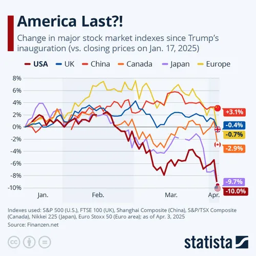 De Amerikaanse aandelenmarkt beleefde donderdag de slechtste dag sinds 2020, omdat beleggers de importtarieven van president Trump moesten verwerken. De verrassend hoge extra tarieven zorgden voor een schokgolf op beurzen over de hele wereld, maar Amerika zelf lijdt er tot nu toe nog het hardste onder.