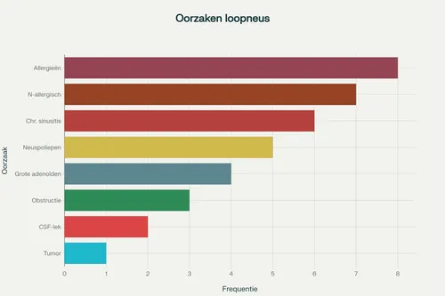 De 8 meest voorkomende oorzaken van een aanhoudende loopneus op frequentieschaal, bron: Cleveland Clinic.]