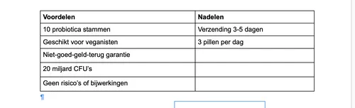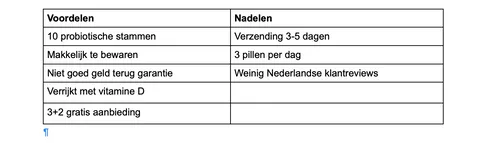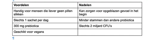 We hebben de onderstaande punten meegenomen in ons probiotica onderzoek: