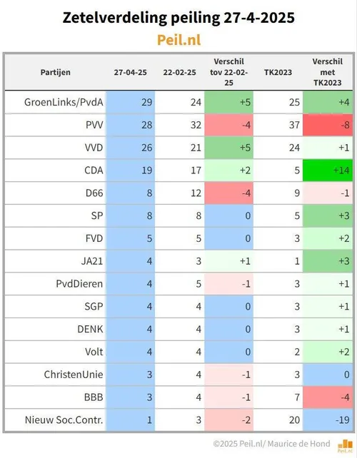 Maurice de Hond is in lijn met de trend. GL/PvdA wint, CDA wint veel, extreemrechts schrompelt ineen.