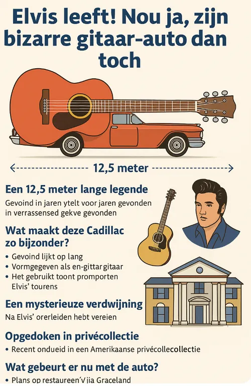 Het klinkt als een mythe uit de gouden tijd van rock-‘n-roll: een reusachtige Cadillac in de vorm van een gitaar, ooit eigendom van Elvis Presley. Maar wat jarenlang als verloren werd beschouwd, blijkt ineens springlevend. De extravagante wagen, ook wel bekend als de ‘rijdende gitaar’, is teruggevonden in verrassend goede staat.