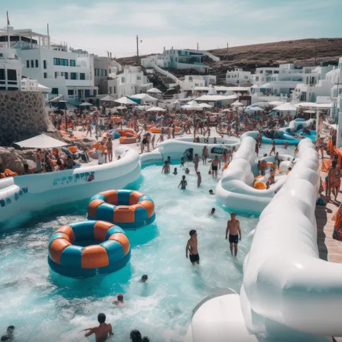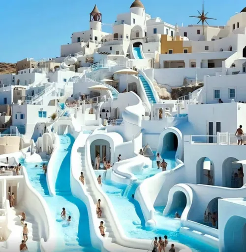Het internet is weer eens betoverd door een spectaculaire vakantiebestemming: een ongelooflijk zwembadpaleis in Santorini, compleet met wildwaterbanen die door de stad kronkelen. Mensen willen het heel graag boeken.